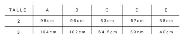 *Las medidas son sobre la prenda en plano SIN ESTIRAR* Estimativos en tallas alfabeticas : 1 : M/L 2 : L/XL
