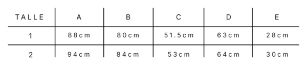 *Las medidas son sobre la prenda en plano CERRADA* Estimativos en tallas alfabeticas : 1 : S/M 2 : M/L
